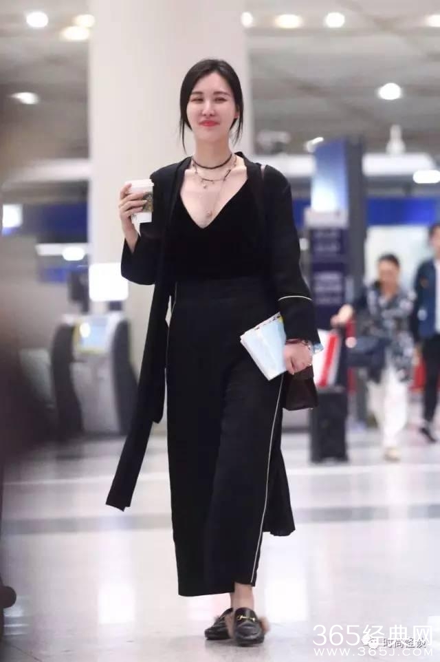 日前,田朴珺“便装”出现在机场,all black搭配,外套maje长款针织开衫,内搭深v绸缎吊带,下着黑色高腰阔腿裤,用Gucci毛毛拖鞋、Givenchy包包、多层次项链点睛,完美演绎机场拍的真.奥义:假装没在凹,其实想很久!