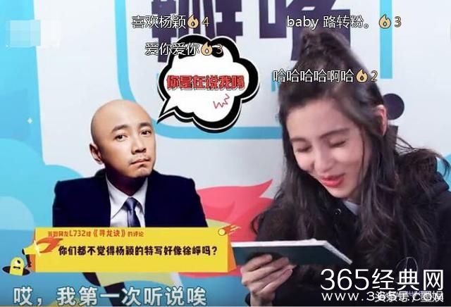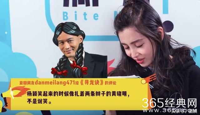 接着她又读了一条网友的评论:感觉杨颖笑起来的时候像扎着两条辫子的黄晓明。
