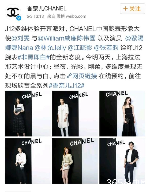 结果,在昨天的香奈儿官方微博上,腕表代言人香奈儿只提到了刘雯和陈伟霆。