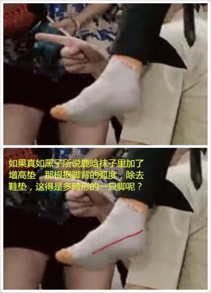当然和黄晓明一样的是有黑粉说鹿晗袜子里有增高垫,但是事实并非如此。
