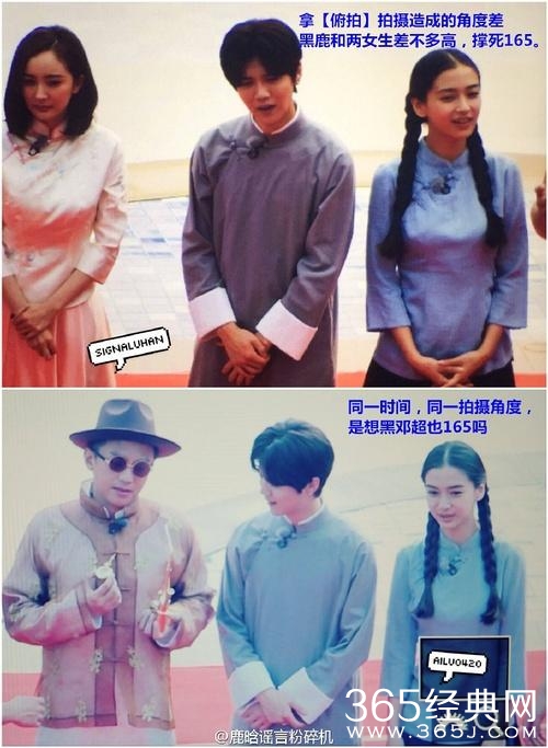 那么到底是谁在撒谎呢?有黑粉曾经发过一个图片,图片上鹿晗和baby以及杨幂差不多个儿,黑粉的言下之意是鹿晗身高只有170左右。然而所长在那个视频中又截到一个图片,就是邓超也和baby相差不多,难道公认的大长腿邓超也170吗?很显然不是,明显是有人俯拍鹿晗。
