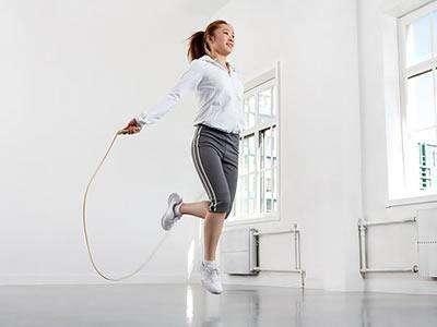 跳绳是一项有氧运动,连续性跳绳能帮助消耗体内的脂肪,一个人跳绳10 分钟,就能消耗掉150千卡左右的热量。所以,跳绳可以燃烧掉大量脂肪,对减肥、降低血脂水平很有益处。