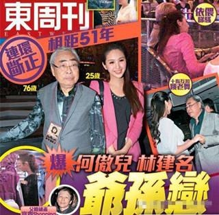 林建名与何傲儿的父亲是好友,并且还收何傲儿为干女儿掩人耳目,不过还是屡屡被媒体拍到曝光,不过这对情侣似乎感情并不好,两人恋情曝光后,何傲儿一度神隐,更被拍到与其他男人车内激吻,被猜测“爷孙恋”见光死。