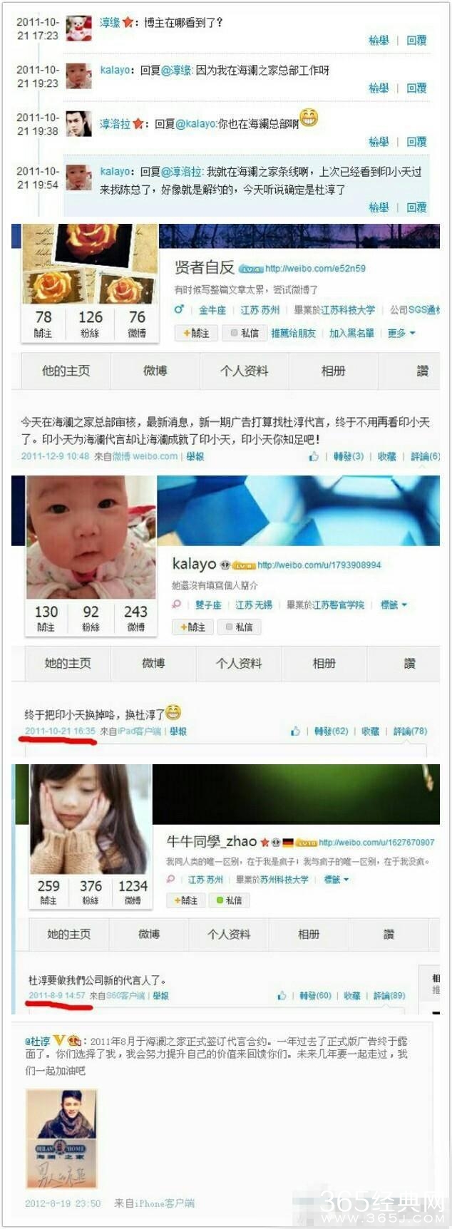 杜淳在2012年7月11日发文称,感谢海澜之家曾陪伴他度过的8年,见证了自己26岁到34岁之间的成长。凑上边潇潇一事和插刀教,印小天博得了很多网友的同情,杜淳被封插刀教教主,全因只有他在事件中获利最多。然而事实并非如此,早在2011年,海澜之家换代言人的消息就已有小道,内部员工发文杜淳将代替印小天。