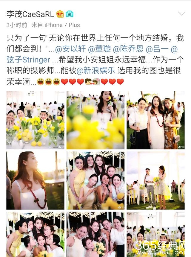 几位都盛装出席安以轩的婚礼,真的好美啊,尤其是李茂帮弦子拍了好多好看的照片。