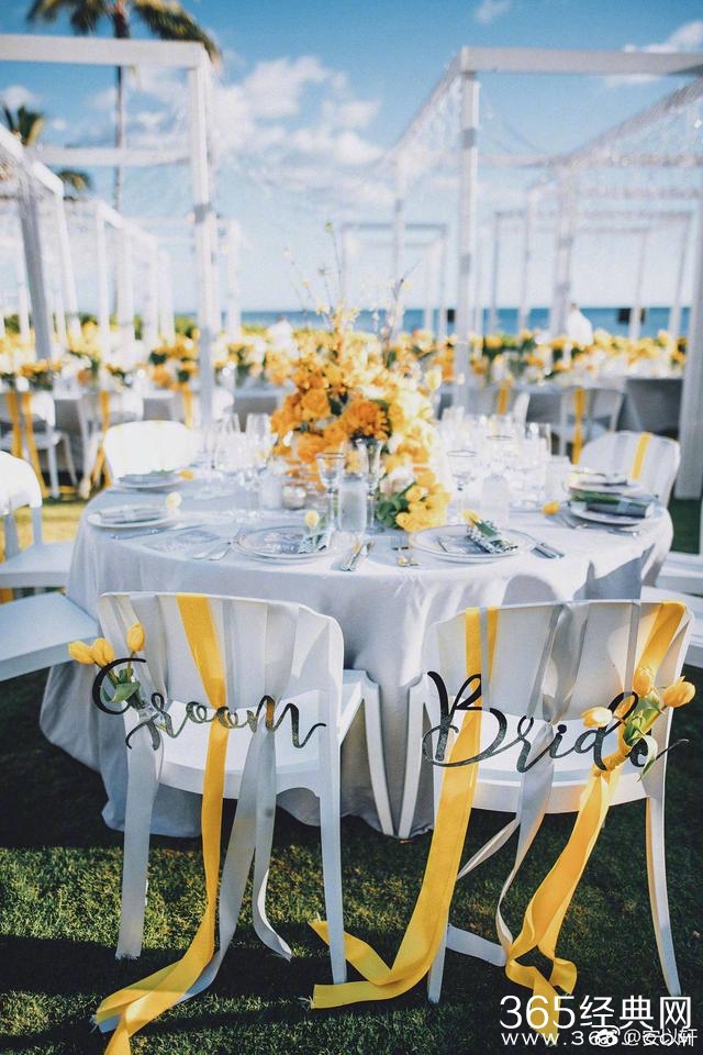 讲真,看到安以轩的婚礼现场,娱记宝宝真的有被美到啊。看过很多明星的婚礼,都是千编一律的粉色、天蓝色,没想到安以轩婚礼的主题色竟然是黄色,明亮鲜艳又不腻歪的颜色,被运用的恰到好处。
