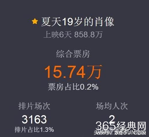 由黄子韬主演的《夏天19岁的肖像》改编于日本的一部作品。电影上映一周,票房只有858万,对于我们现在票房以亿计算的年代,这真的很惨。