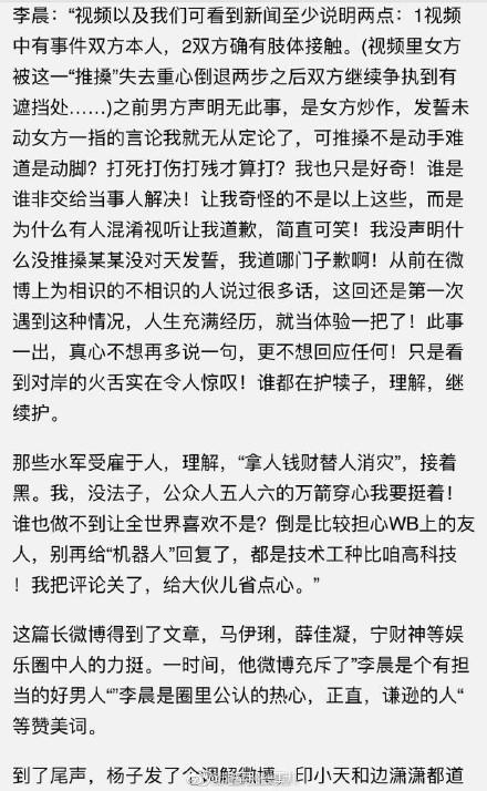 今日下午,李晨在微博中更新动态并配图一个大熊猫,然而微博评论却没有一个是和该图片有关的信息,全部是当年插刀事件,不少网友更是要求李晨向印小天道歉,李晨微博评论区几乎沦陷。