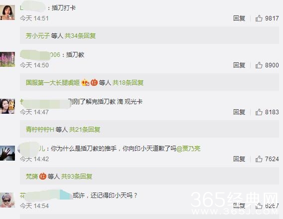不仅李晨微博如此,贾乃亮依然面临这样的问题,仅仅6月1日微博就已被网友占领攻陷,到处都弥漫着插刀教的信息。