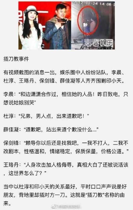 近日,随着全明星探爆料称,印小天遭受妻子骗婚后,当年插刀教更是被网友扒出来。百度搜索插刀教更是有很多相关信息,甚至被一度设置为百科。