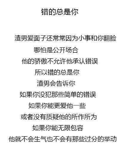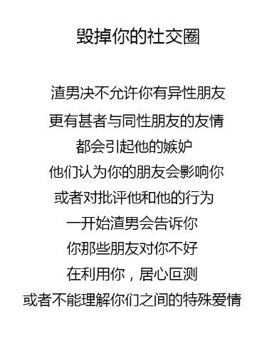 渣男人格的形成在心理学上往往被认为是极度自卑和极度自我膨胀的综合体现,他们很少能接受别人不喜欢自己或者受不了自己的现实,他很有可能继续来骚扰你,即使你们的关系已经完全中止。但是,不要动摇你的立场。这段关系永远地结束了!在临床医学和心理医学中,健康的关键总是及早发现和治疗,所以渣男是可以改变的没错。但是如果你没有信心改变他,还是快跑吧!