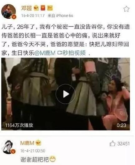 不久前邓超发了一个视频并艾特了鹿晗,只见视频中是一只梅花鹿,而邓超一直在追问:“小鹿说你爸爸是不是这个世界上最帅的人,噢,是啊,你爱你爸爸吗?你爸爸是邓超对吧,小鹿过来。”
