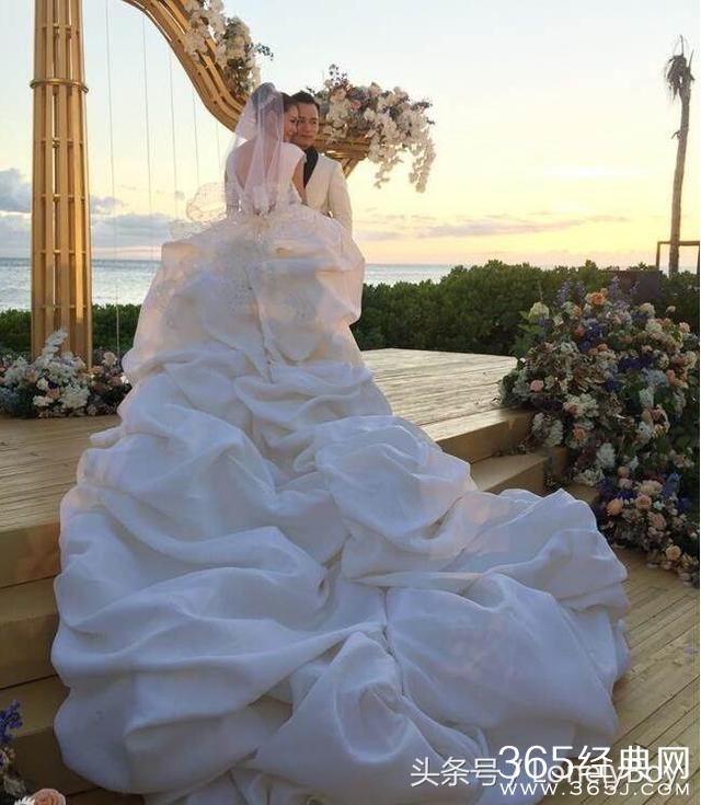 然而看到这一身雪白的拖地婚纱的时候,小编一开始觉得有点怪怪的,好听点说是像云朵,但是云朵没有这么厚重。
