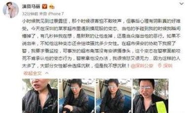 女星在受到伤害后一般都会息事宁人,但也有一些很高调的人,如马丽便是其中一位,马丽在深圳的超市被一男子摸了PP,马丽晒出了对方的照片,并在超市保安的协助下报警,但因为是在超市的摄像头死角,对方死不承认。事后,马丽说:“我很愤怒又很无力,因为这样的人太多了,大多数的女性都会选择沉默,但我并不会”。