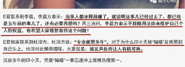 如今印小天因被骗婚上了热搜,李晨杜淳也被推上话题榜,在网友们乱哄哄的指责中,有媒体曝出了李晨跟杜淳方面的回应。