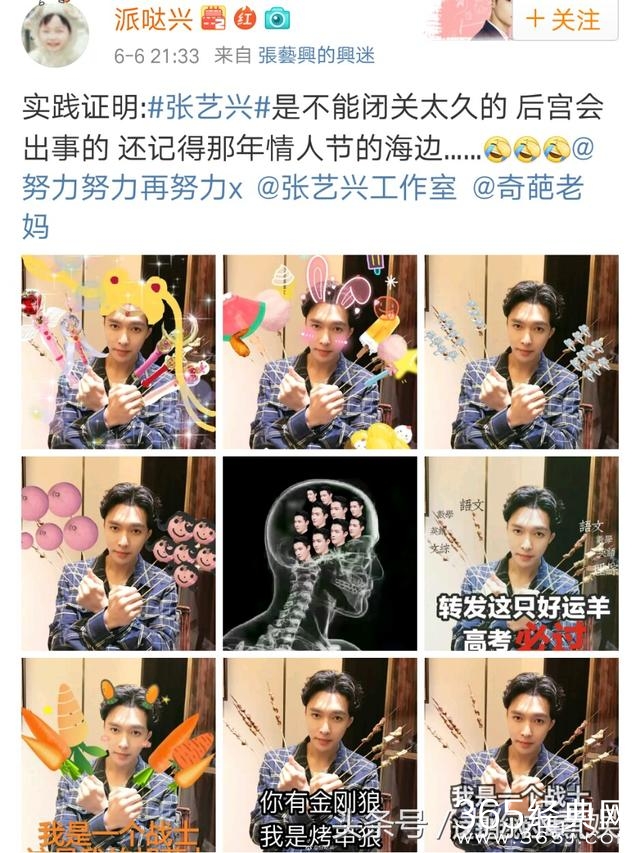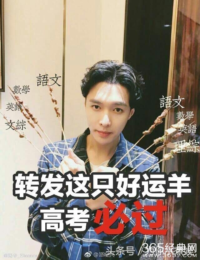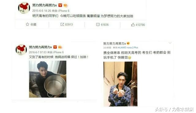 一年一度的高考,就如一场盛大的节日,全国百万高中生终于将告别高中生生活,迎来象牙塔的日子。每年高考时,老天几乎都会下场雨,据说是个好兆头,而就连高考的日子6月7号8号也有“录取吧”的好寓意。话说在娱乐圈年年都有大明星送祝福,有偶像的高考生或许看微博,偶像的祝福必然有意义,去年网友突发奇想的搞笑段子,小编最觉得有趣!比如黄子滔(物理滔滔)、李宗盛(理综胜)、余文乐(语文乐)、迪丽热巴(地理热吧)、曾志伟(政治伟)......,不过,有一个明星却是自己造段子唉,简直祝福届的一股清流呐!