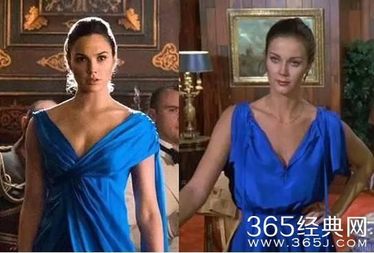 戴安娜舞会上的蓝色长裙也在致敬1975年的美剧《神奇女侠》。