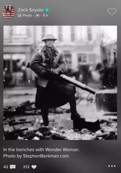 《正义联盟》的导演扎克·施耐德之前在Vero上爆出了自己穿军装的照片。