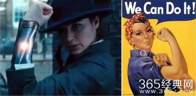 戴安娜在小巷子里为史蒂夫挡子弹,有一幕致敬了二战时期铆工罗西(Rosie the Riveter)的海报,巧妙地宣扬了强烈的女权主义。
