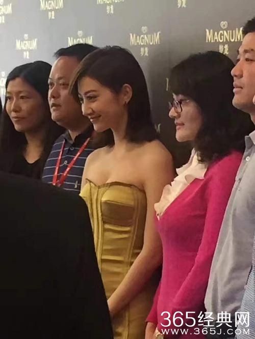 张雨绮穿了这件礼服,估计比较紧张吧!两手臂得撑着,以防礼服脱落哦!