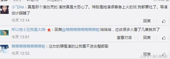 看过原著的都知道,原著中的白灵是白鹿的化身啊,灵气可爱。可在网上一片倒的骂声中,孙铱所演绎的白灵却成了疯癫浮夸、神经兮兮、无理取闹的疯子,简直太聒噪了,观感感真的好差啊!