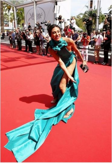 在红毯上这位明星,面对媒体朋友故意摆出了非常妖娆的造型,之后还特意把自己的裙子掀开。