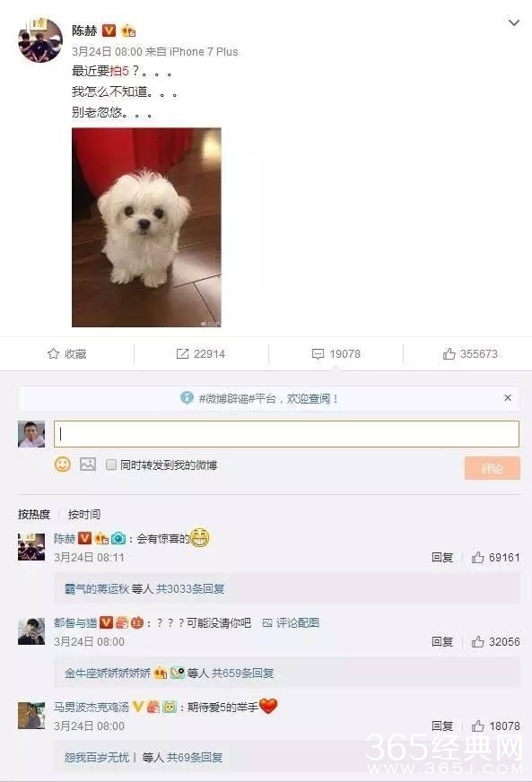陈赫还在微博上发声希望爱5可以早点再相聚,而过了10多天却澄清爱5开拍的消息,不过评论说有惊喜怎么回事?