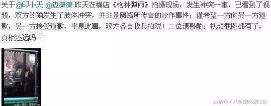 在拍摄过程中,估计和同剧组的女演员边潇潇有点冲突,所以就闹的不大好看。不过边潇潇的助理当时一口咬定:印小天打了边潇潇。