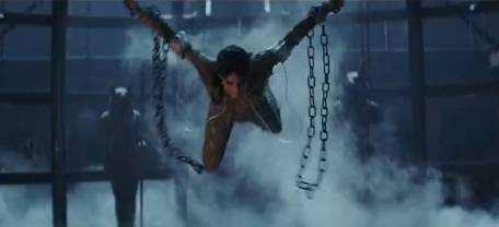 然而,动作戏也不只简单的打斗,这一段锁链空中翻转,