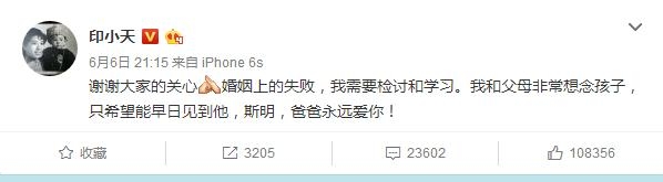 印小天事业和婚姻都受到这么大的打击,真的是很让人惋惜!他今天也首次回应,对大家的感谢和对儿子的思念!真希望哈琳娜能良心发现。