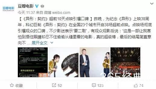 昨日,好莱坞科幻惊悚片《异形:契约》在全国23个城市开启了38场点映。