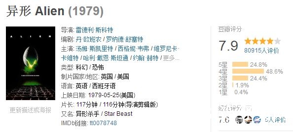 中美观众对《异形:契约》的评价相近,是具有可信度的。