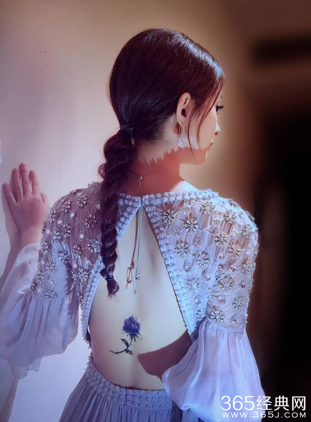 赵丽颖原本给我们的形象是甜美可爱、清纯可人,但身材娇小的她穿上露背装以后立马化身为性感女神,背后的一朵蓝玫瑰更是锦上添花。