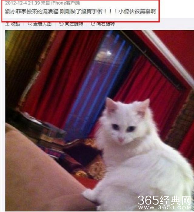 但是刘亦菲的流浪猫会越来越多,她是怎样处置的呢?首先,每只猫咪到了刘亦菲的家里,她首先会挨个的进行精心的照顾,待到它恢复到原来的有活力的状态的时候,她就会把猫咪送去医院做绝育手术。对,就是每只猫咪都会做这个绝育手术。最后才是把一些健康的猫咪送出去,送给粉丝、朋友、动物机构等。