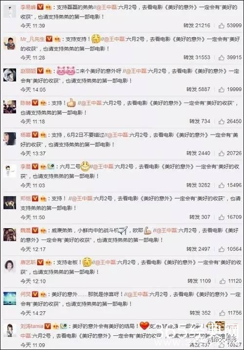 当然,这只是整个转发阵容的冰山一小小小角...其实这个现象还是引起了很多人关注的,大家在感叹王总号召力的同时,相信更多人是像小编一样在期待这部电影的票房。