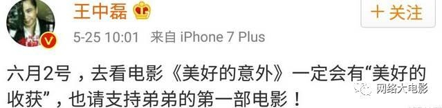 5月25号那天,华谊老板王中磊为儿子王元也新片站台,请大家支持《美好的意外》。