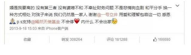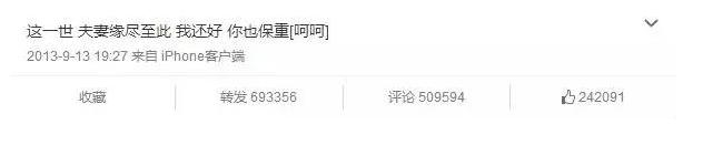 2013年9月13日,王菲发了一条微博称:这一世 夫妻缘尽至此 我还好 你也保重。