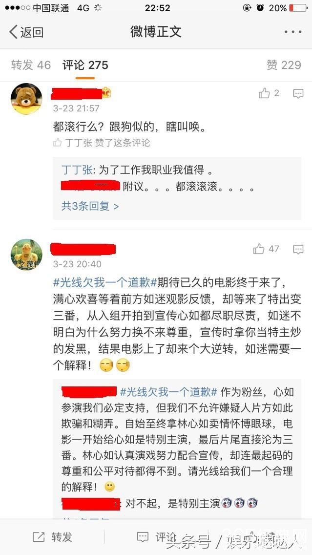 里面有大量“粉丝”刷光线对女主角林心如待遇不公