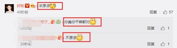 随后又在此删除重发此次没忘记艾特秦俊杰,网友也是搞笑评论道,毕竟你美,删几遍都行!舒畅也是好心情的回复网友,求原谅。