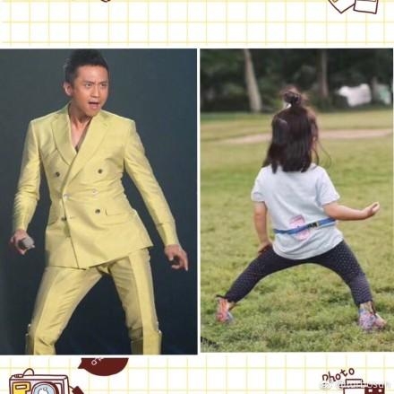 照片中依然是小花妹妹的背影,不是小花妹妹摆着和爸爸一样的姿势