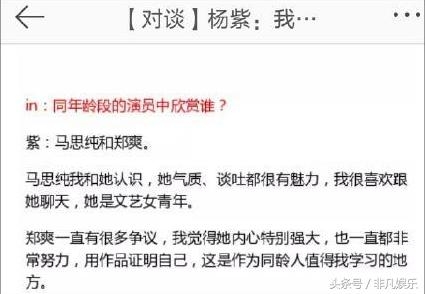 杨紫在采访中说过自己最欣赏的两个同年龄段演员是郑爽和马思纯。