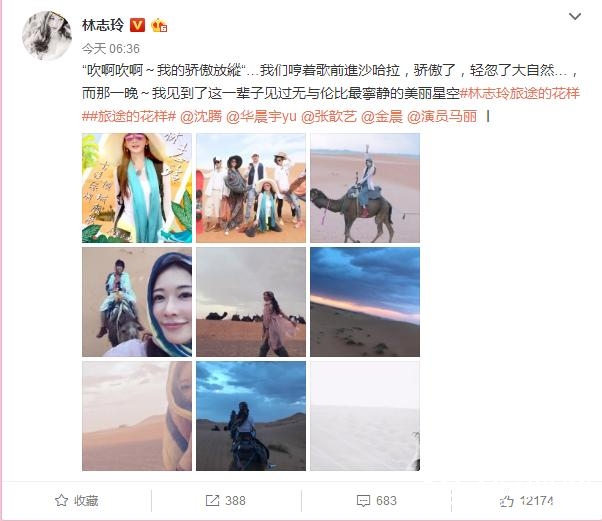 今日,林志玲微博晒出一组骑骆驼图,众网友HOLD不住了。