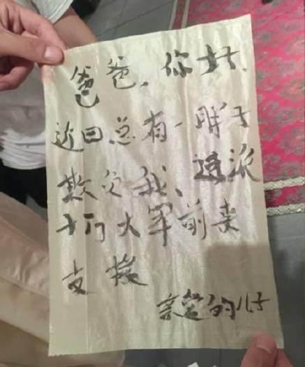 现实中信面写的是:爸爸你好,近日总有一胖子欺负我,速派十万大军前来支援,亲爱的儿子。