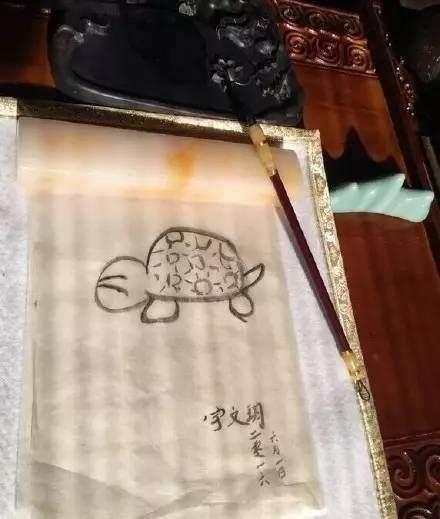 现实中其实是在纸上画了一只小乌龟,这乌龟画得也是太委屈了!这高冷的宇文玥人设崩得有点快啊!留下时间和名字是觉得这幅画以后会出名吗?