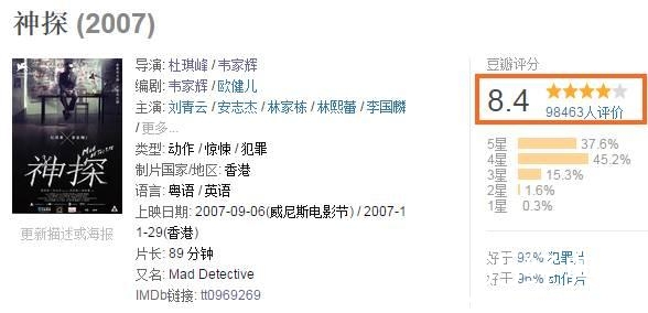 而这部「神探」就是韦家辉出走3年后,重回银河印象,再搭档杜琪峰的回归之作。
