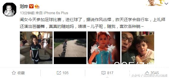 刘烨微博说道:闺女参加足球比赛,进仨球,作风凶悍,但是儿子诺一随我,各种躺!看看霓娜的照片,确定这才是几岁的小女孩吗?太有气质,太美了!不过自己和诺一的葛优躺也被拿来调侃了。