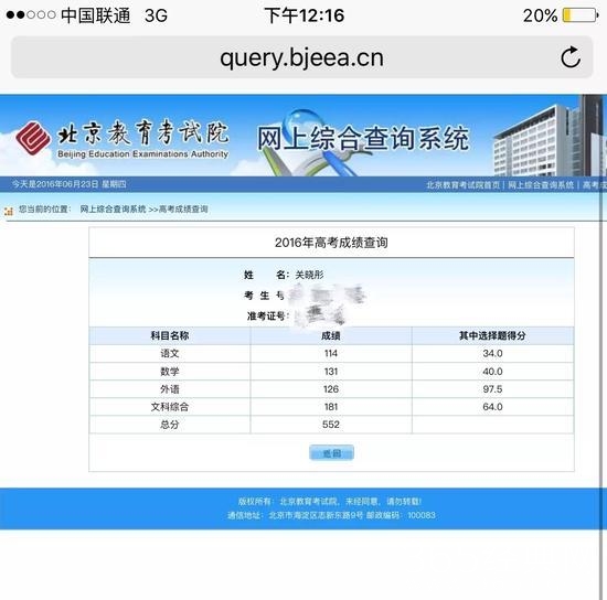 “国民闺女”关晓彤2016年参加高考的时候也是备受大家关注啊!她不仅人漂亮,演技好,上学期间更是一名学霸!不过她最后不负众望,取得了高考总分552分,超过北京市艺术类文科本科线206分。其中,数学131分,英语126分,被网友赞为学霸!“什么也不说了,我非常满意!”关晓彤母亲在朋友圈写道。