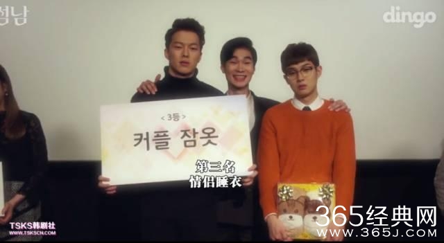 然而奖品是:情侣睡衣,两个人一脸的生无可恋~