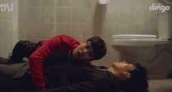 去厕所都是神同步,手机掉进马桶,地滑甩到腰伤起不来,向眼镜男求救。