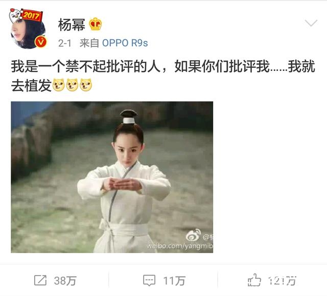 看来大幂幂真的应了那一句,"我是个禁不起批评的人,如果你们再说,我就去植发!"